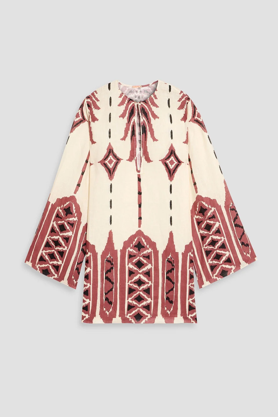 Dress printed linen hook-fastening keyhole at front mid-weight, non-stretchy fabric dry clean imported 100% Linen Product Code 46376663163068216