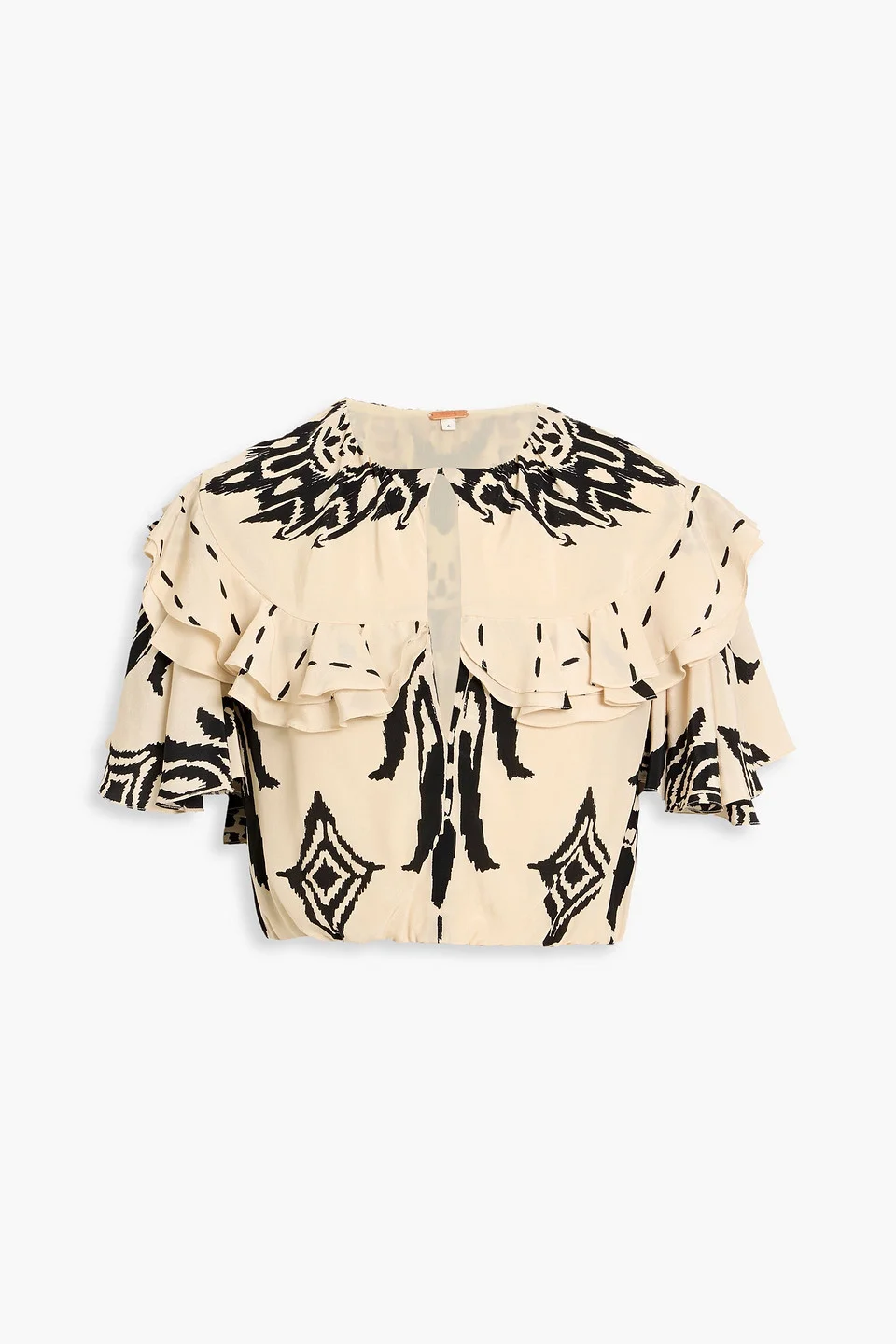 Influencial Tribes Cropped Ruffled Printed Silk-chiffon Top