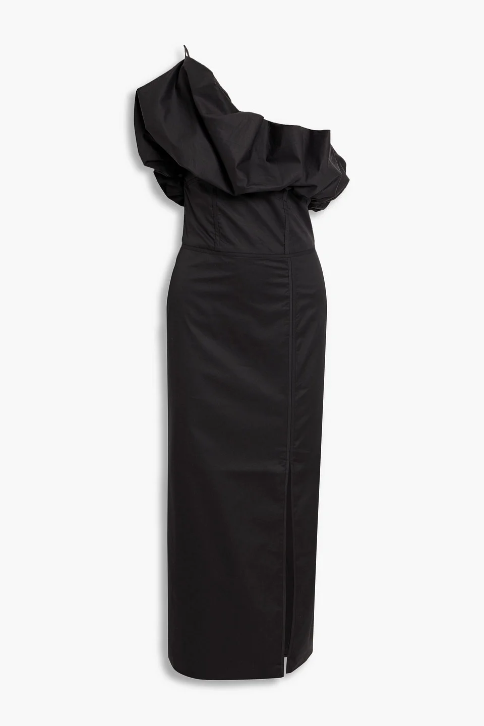 Noche Habanera one-shoulder cotton-blend poplin midi dress