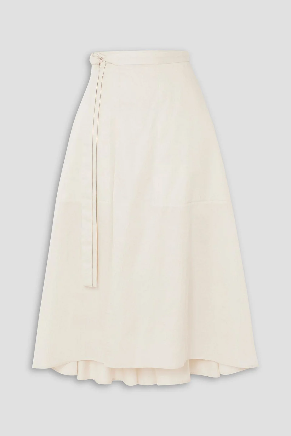 Wrap skirt cotton side slit pockets ties at waist mid-weight, non-stretchy fabric dry clean imported 100% Cotton Product Code 1647597324995978
