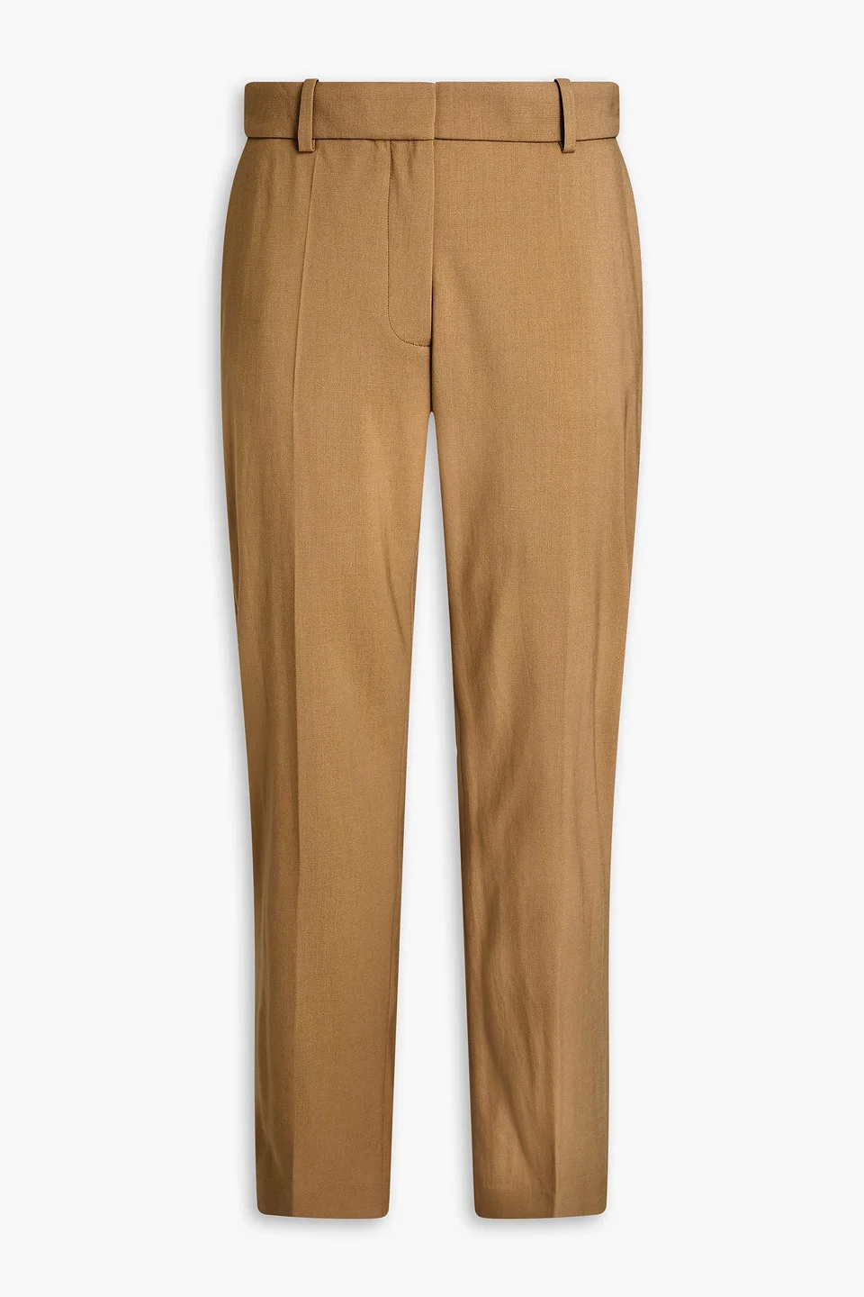 Slim-leg pants twill wool-blend cropped pressed creases two side slant pockets two back welt pockets belt loops high-rise cut concealed hook, button and zip fastening at front mid-weight, stretchy fabric dry clean imported 98% Virgin Wool 2% Elastane Product Code 1647597352199183