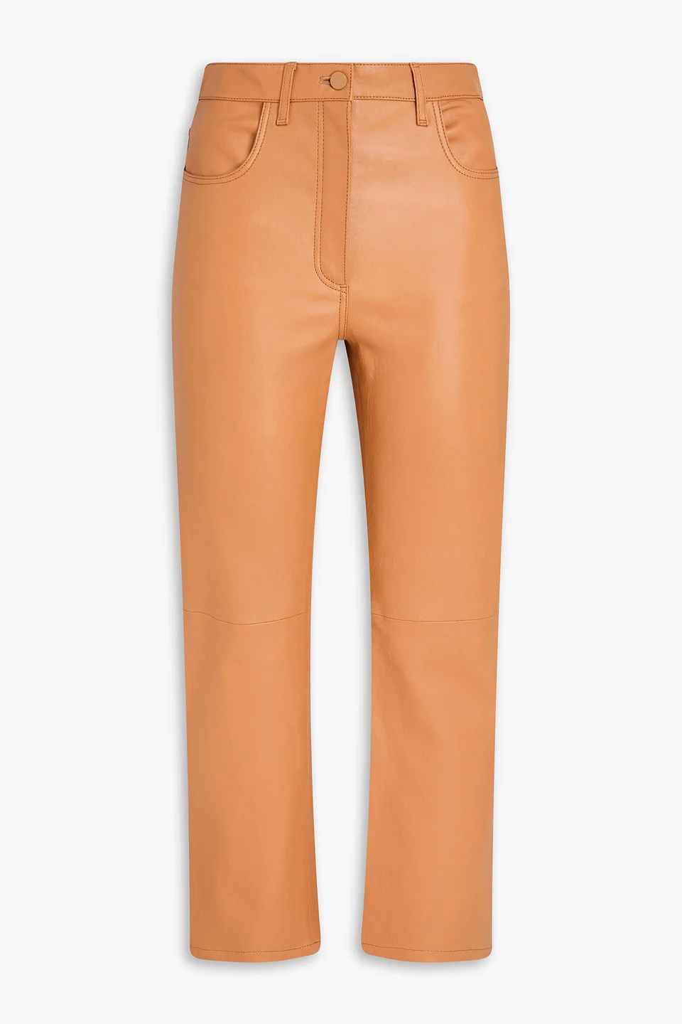 Straight-leg pants leather cropped front slant pockets back patch pockets belt loops high-rise cut button and concealed zip fastening at front supple, non-stretchy leather specialist clean made in france 100% Lambskin Product Code 46376663162904466