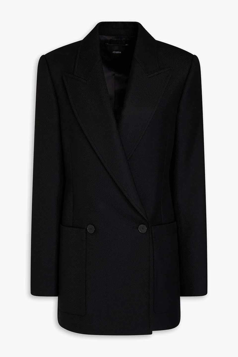 Blazer twill wool-blend shoulder pads buttoned cuffs front patch pockets button fastening at double-breasted front fully lined back vent mid-weight, non-stretchy fabric dry clean imported 50% Wool 30% Polyester 20% Viscose Product Code 46376663162901069