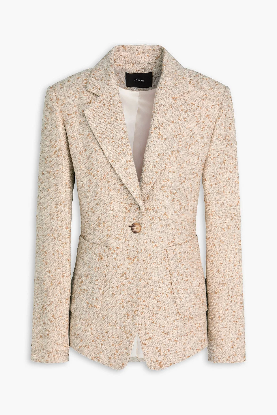 Blazer boucle-tweed shoulder pads buttoned cuffs front patch pockets button fastening at front fully lined back vent mid-weight, non-stretchy fabric dry clean matching pants also available imported 57% Viscose 30% Cotton 9% Acrylic 4% Polyamide Product Code 46376663162904408