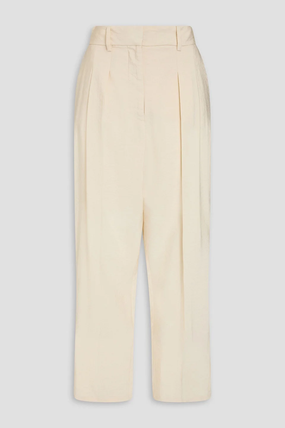 Wide-leg pants drill silk-blend pleated side slit pockets back welt pockets belt loops partially elasticated waist high-rise cut concealed hook, button and zip fastening at front mid-weight, non-stretchy fabric dry clean imported 82% Silk 18% Polyamide Product Code 46376663162901227