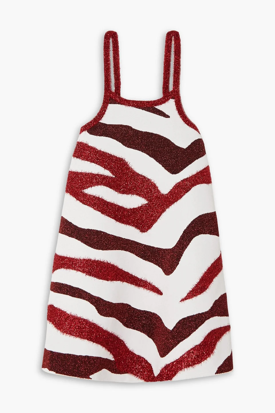 Dress metallic zebra-print jacquard-knit slips on mid-weight knit dry clean imported 49% Viscose 27% Polyester 17% Metallic fiber 6% Polyamide 1% Elastane Product Code 1647597321334028