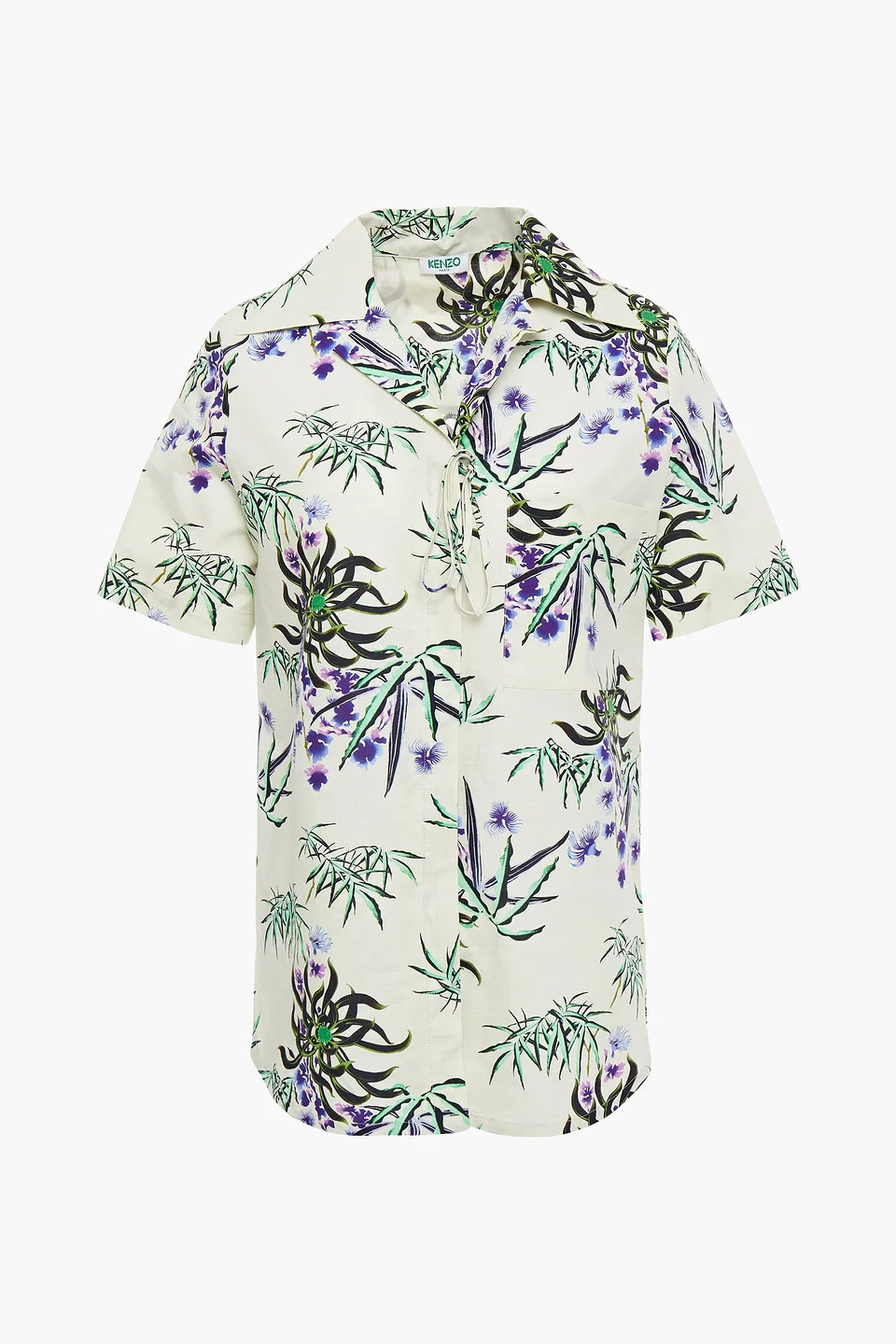 Shirt printed cotton and linen-blend lace-up front breast pocket concealed button fastenings through front non-stretchy fabric mid-weight fabric dry clean imported 62% Cotton 38% Linen Product Code 15546005222375819