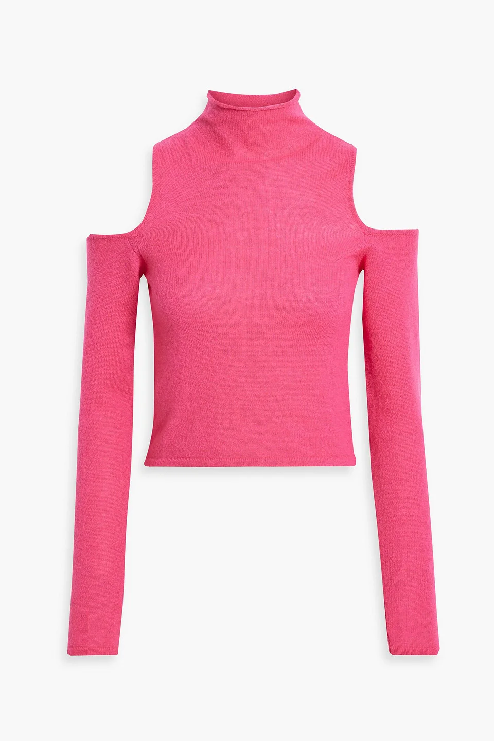 Cold-shoulder cashmere and silk-blend turtleneck sweater
