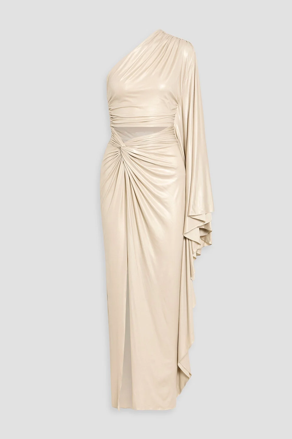 Draped cutout metallic stretch-jersey gown