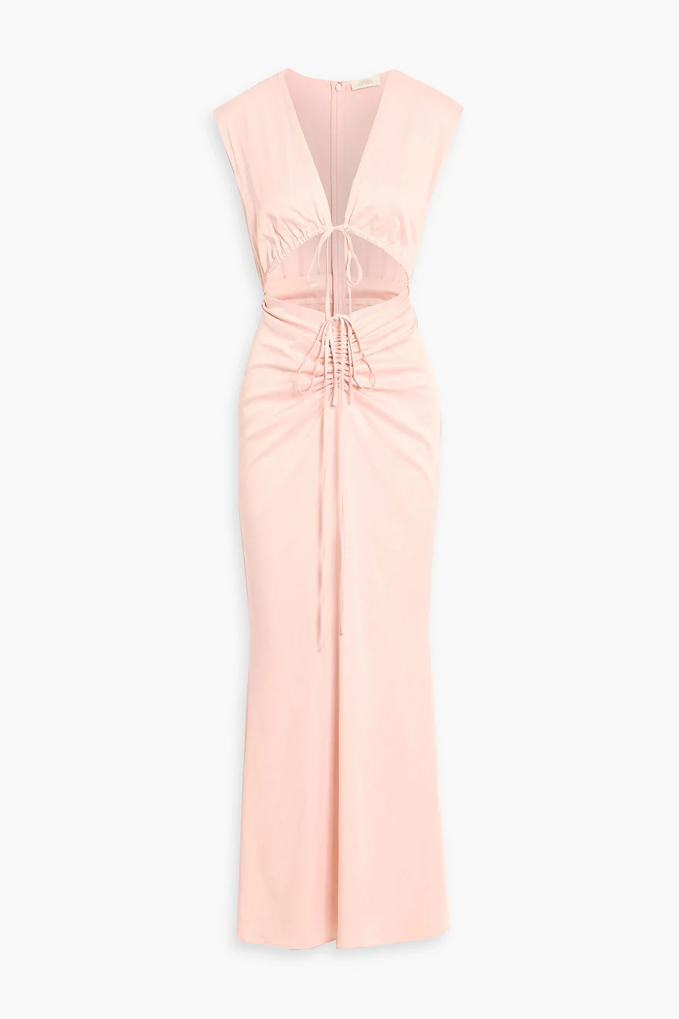 Dress satin ruched cutout drawstring ties concealed hook and zip fastening at back mid-weight, slightly stretchy fabric dry clean 95% Viscose 5% Elastane Product Code 46376663163046581