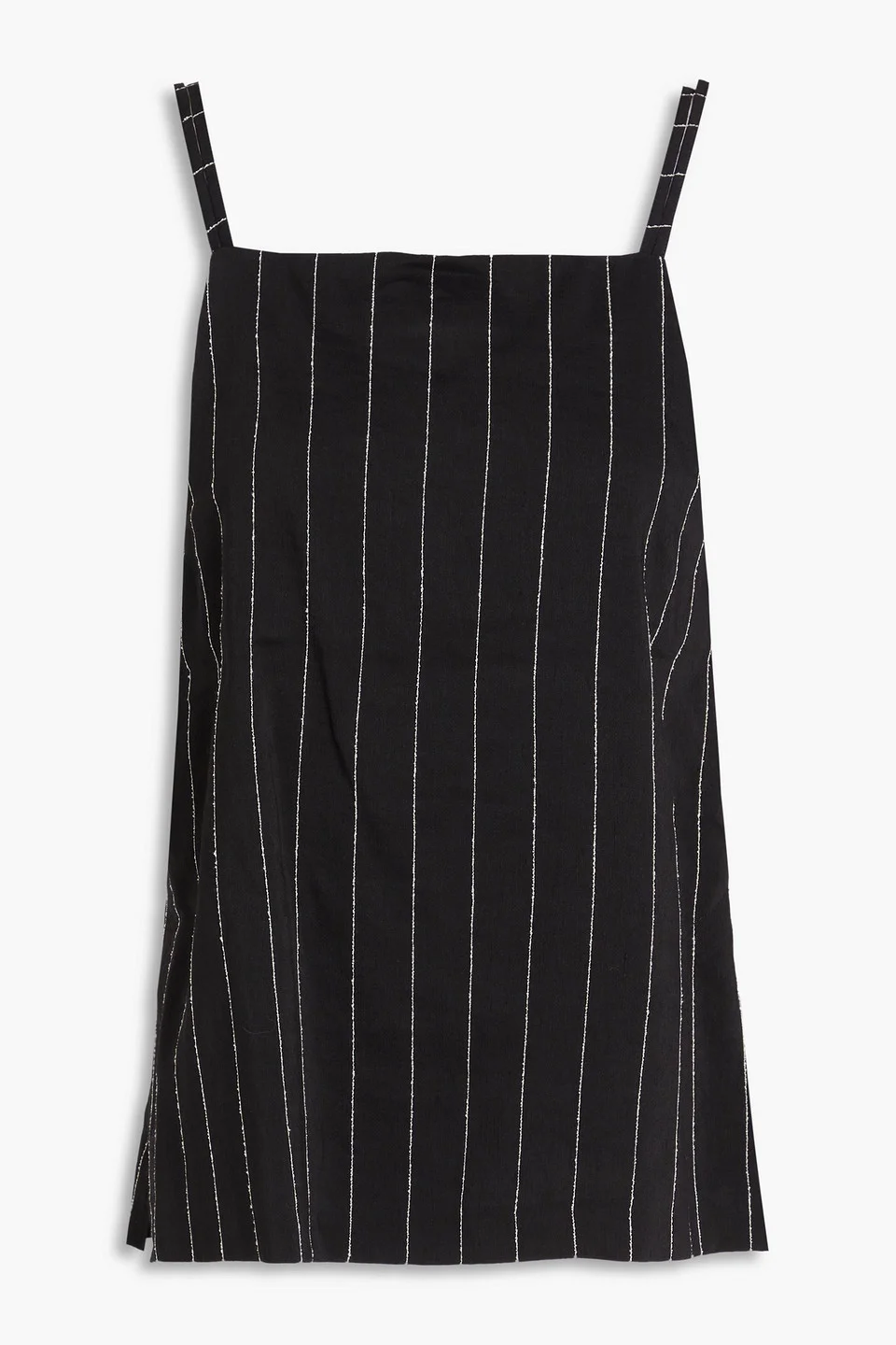 Top striped twill adjustable straps side slits slips on mid-weight, non-stretchy fabric hand wash or dry clean imported 55% Viscose 43% Linen 1% Cotton 1% Polyamide Product Code 1647597360230153