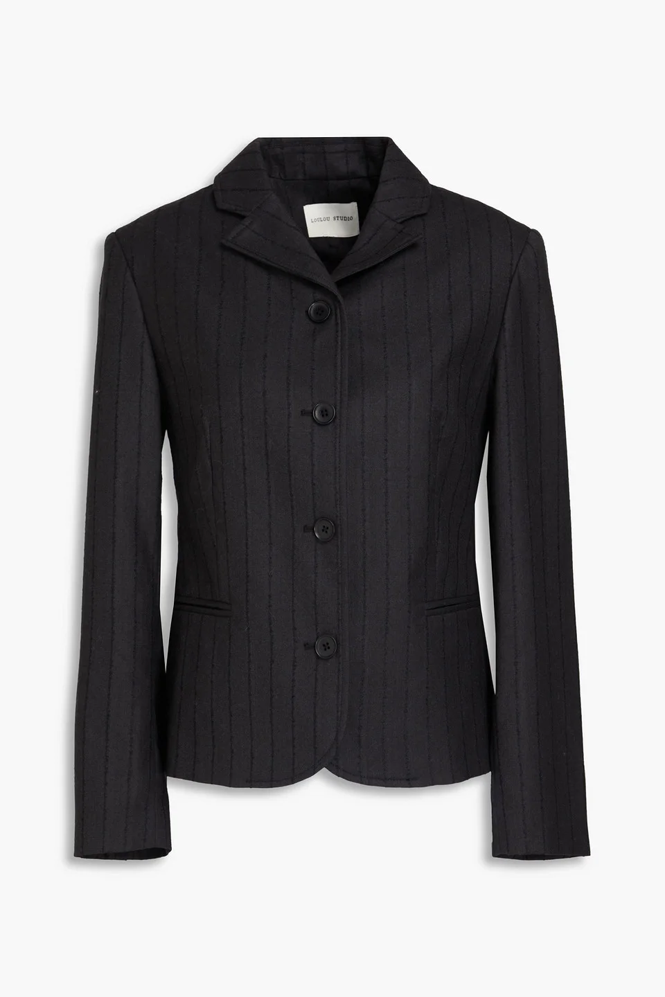 Blazer pinstriped wool-twill shoulder pads boucle trims buttoned cuffs two front welt pockets button fastenings through front fully lined mid-weight, non-stretchy fabric hand wash or dry clean imported 100% Virgin Wool Product Code 1647597345530796