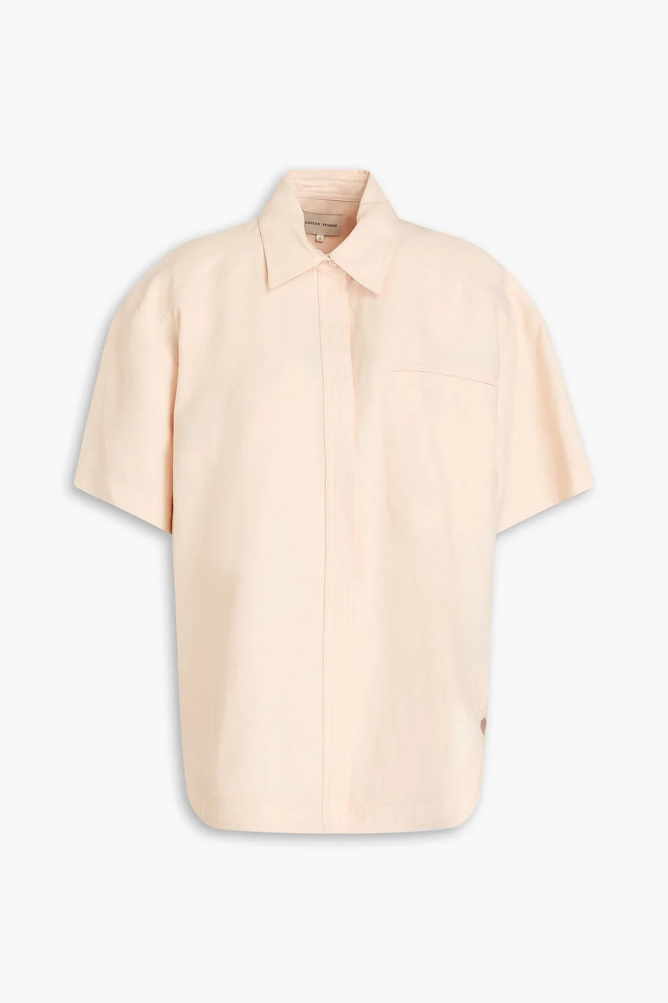 Shirt twill breast pocket curved hem partially concealed button fastenings through front hand wash or dry clean imported 85% Viscose 15% Linen Product Code 1647597360241691