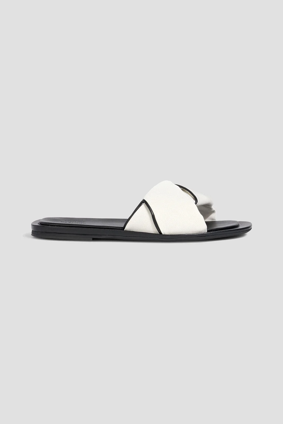 Slides faille leather trims open almond toe slip on rubber sole made in italy 100% Textile fibers Product Code 46376663163065472