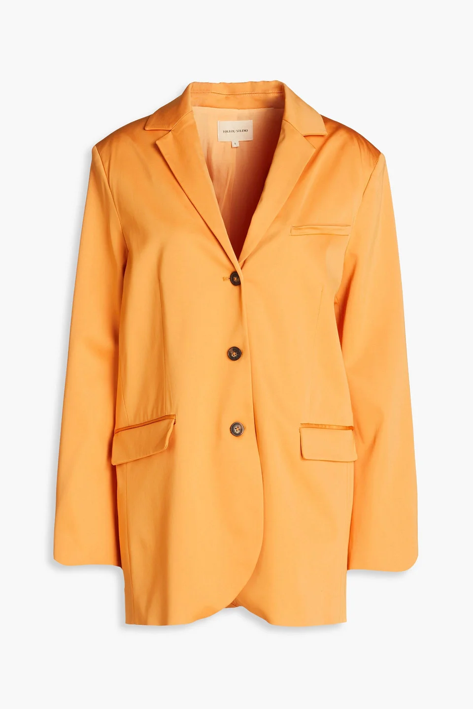 Blazer satin shoulder pads breast pocket two front flap pockets button fastenings along front fully lined back vent slightly stretchy fabric mid-weight fabric dry clean imported 98% Viscose 2% Elastane Product Code 1647597320985948