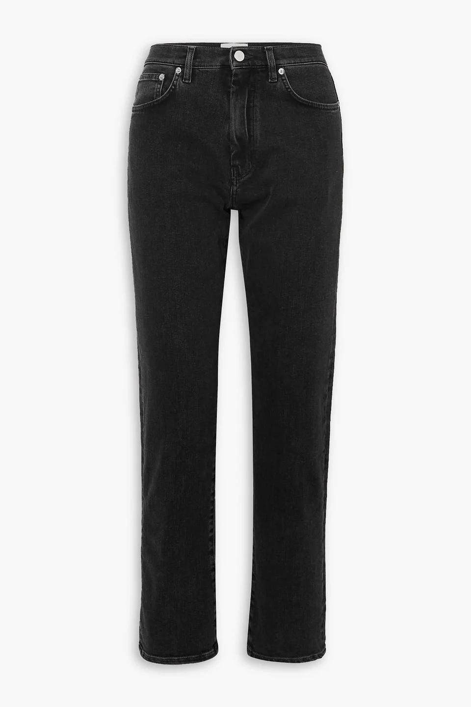 Straight-leg jeans denim belt loops high-rise cut five pockets button and concealed zip fastening at front mid-weight, non-stretchy fabric machine wash or dry clean made in italy Parisian label LOULOU STUDIO makes chic staples, and every wardrobe would benefit from this these 'Wular' jeans. They're made from premium denim with a high-rise waist and straight-leg fit. 100% Organic Cotton Product Code 1647597349037851
