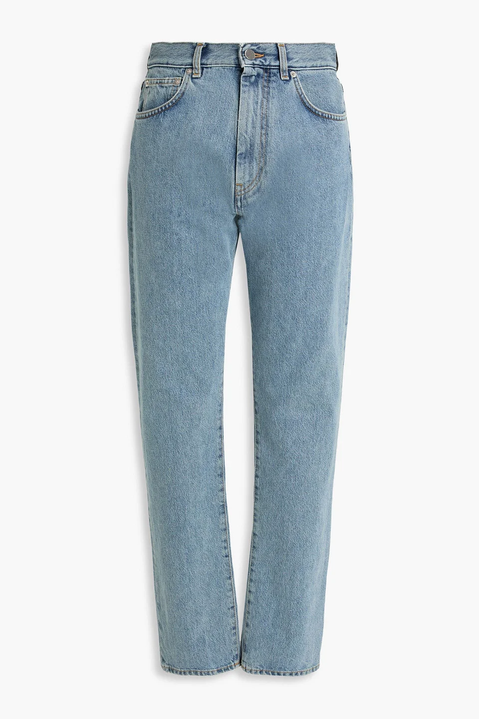 Straight-leg jeans denim belt loops high-rise cut five pockets button and concealed zip fastening at front mid-weight, non-stretchy fabric machine wash or dry clean made in italy 100% Organic Cotton Product Code 46376663163064999