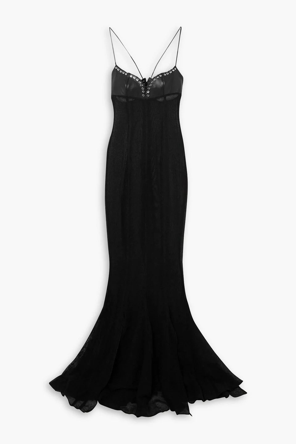 Dress fishnet cotton-blend eyelets leather trims lace-up back concealed zip fastening along back lightweight, non-stretchy sheer fabric dry clean made in france Ludovic de Satin Sernin’ maxi dress packs major va va voom energy. Knitted from cotton-blend fishnet, it’s topped with supple leather cups traced with signature eyelets and has a flowy mermaid hem. You’ll want to add a tonal bodysuit for coverage. 70% Cotton 30% Polyester Product Code 46376663162963608