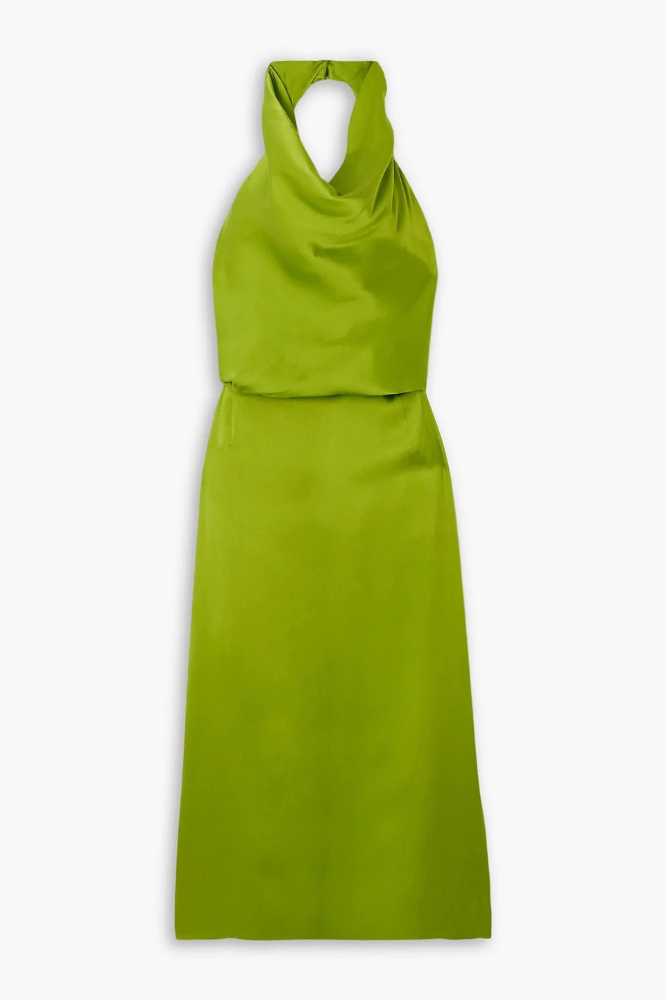 Open-back Draped Silk-satin Halterneck Midi Dress
