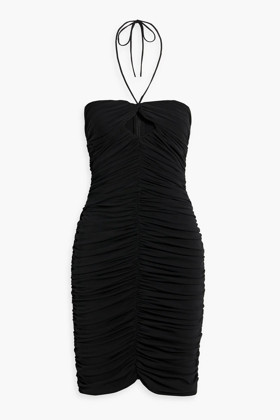 Dress stretch-jersey ruched cutout ties at neck concealed hook and zip fastening at back fully lined stretchy fabric mid-weight fabric dry clean imported 63% Viscose 24% Polyester 13% Elastane Product Code 1647597325256039