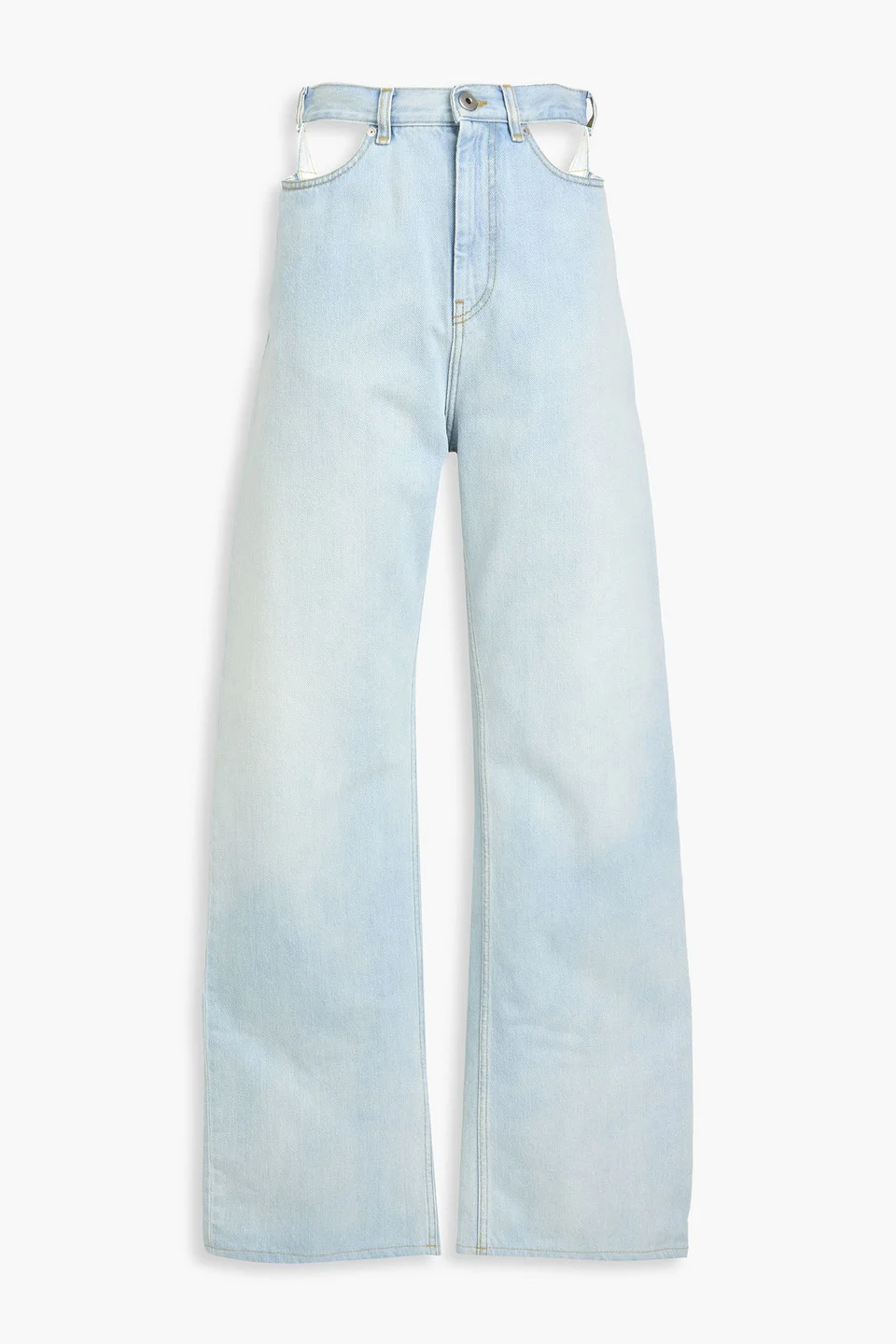 Wide-leg jeans faded denim cutout belt loops high-rise cut five pockets button and concealed zip fastening at front mid-weight, non-stretchy fabric machine wash or dry clean made in italy 100% Cotton Product Code 46376663163051851