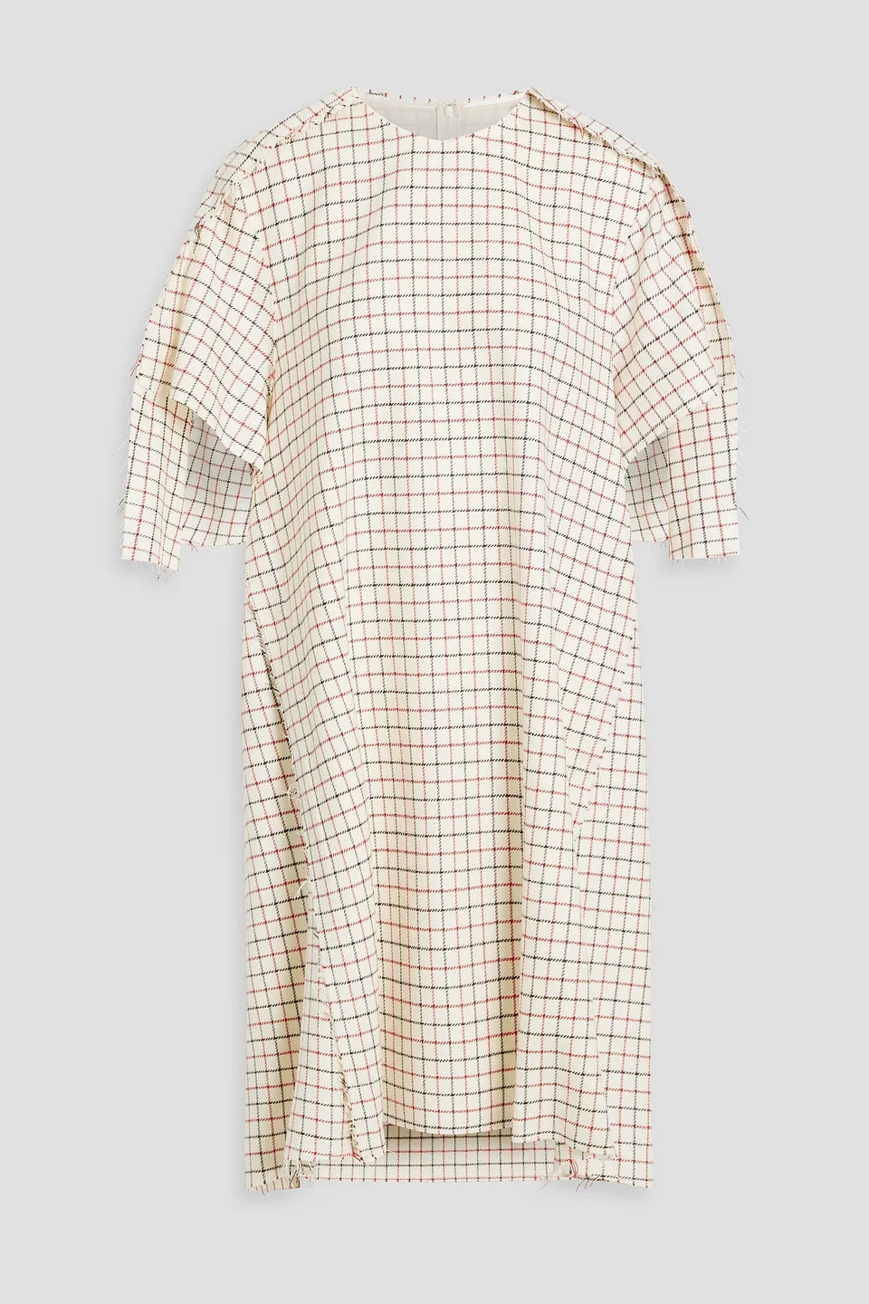 Dress checked wool-tweed frayed trims draped concealed hook and zip fastening at back fully lined mid-weight, non-stretchy fabric dry clean made in italy 100% Wool Product Code 46376663162924899