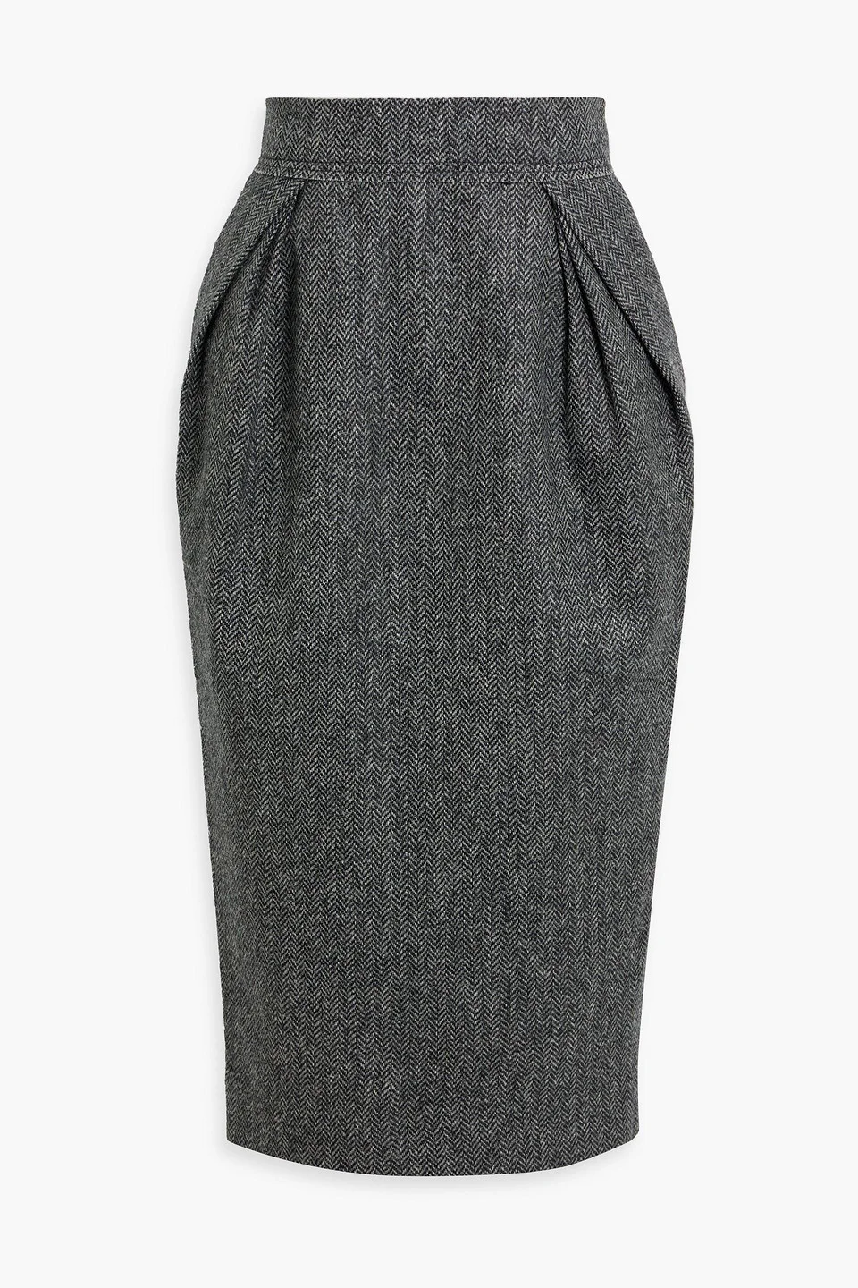 Skirt herringbone wool-tweed pleated front slant pockets back slit fully lined concealed hook and zip fastening at back mid-weight, non-stretchy fabric dry clean imported 100% Wool Product Code 46376663162924894