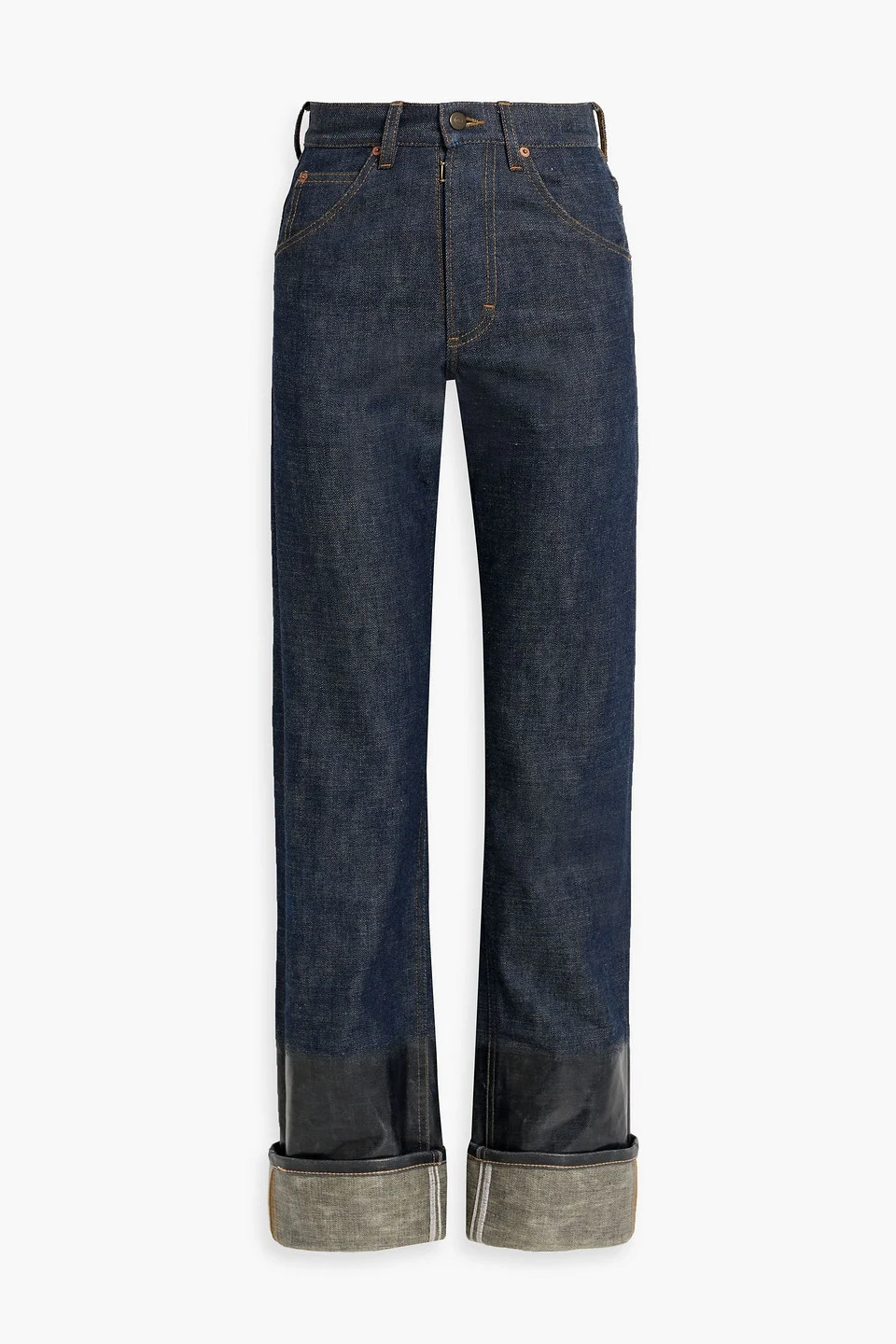 Straight-leg jeans denim belt loops high-rise cut five pockets button and concealed zip fastening at front folded cuffs mid-weight, non-stretchy fabric dry clean imported 100% Cotton Product Code 46376663163116854
