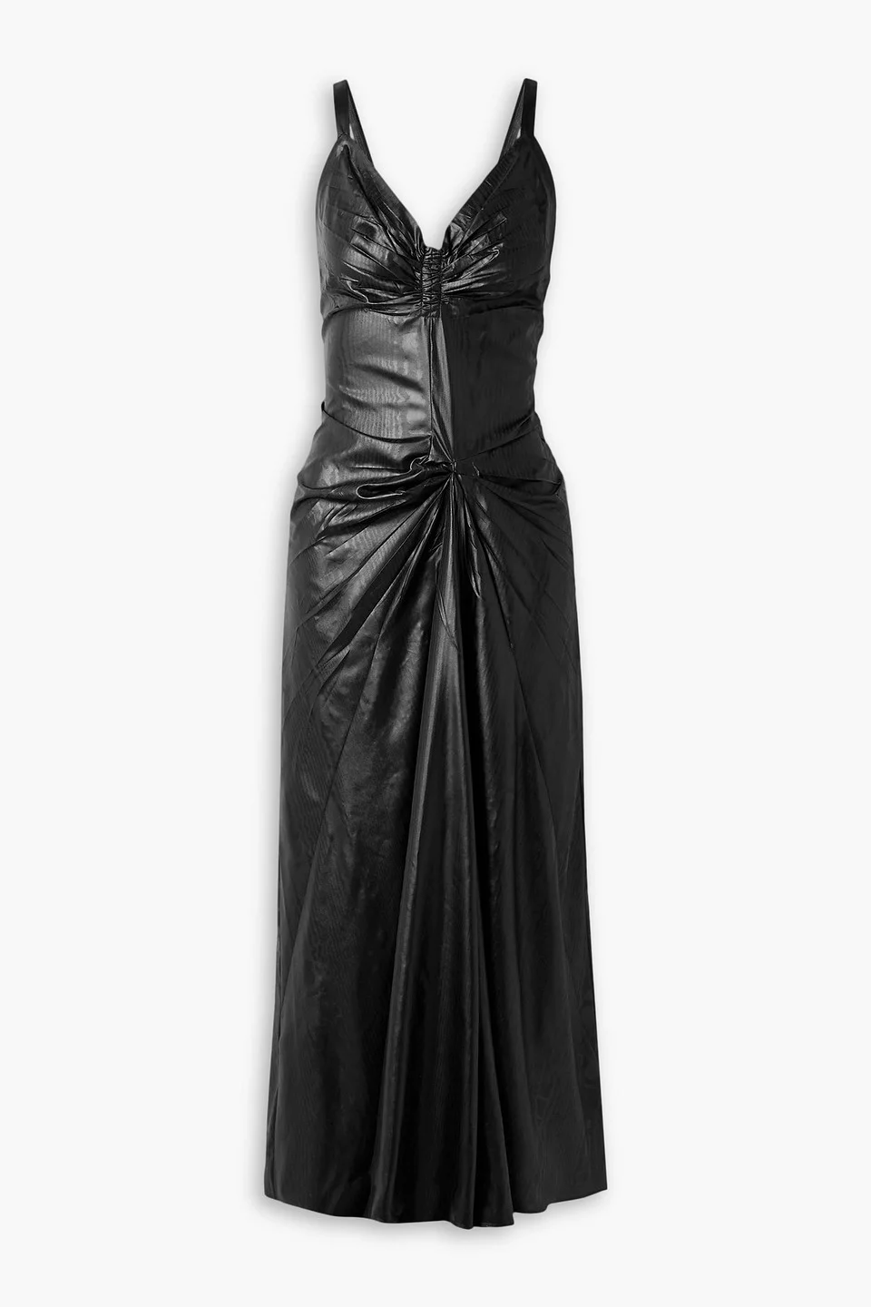 Dress moire ruched concealed hook and zip fastening along back lightweight, non-stretchy fabric dry clean made in italy Maison Margiela's dress has been made in Italy from black moire that has a subtle, lustrous finish. It's ruched and gathered through the front and falls to a softly pleated maxi skirt. Finish the look with point-toe pumps. 100% Polyester Product Code 1647597346467117