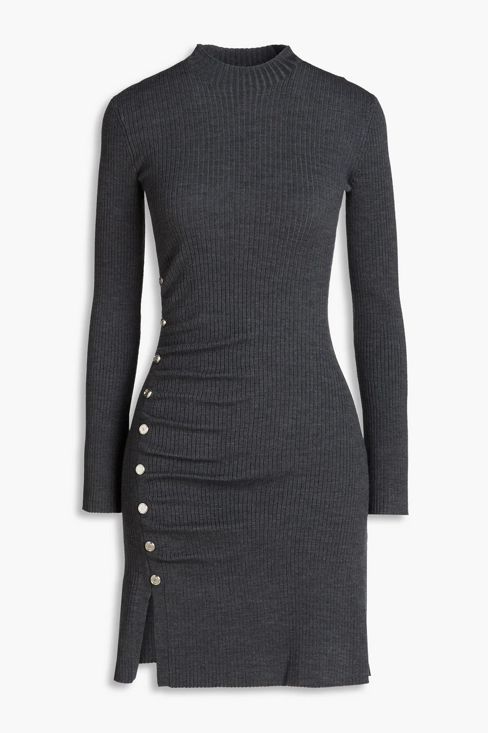 Dress ribbed-knit button-embellished ruched front slit slips on mid-weight knit hand wash imported 42% Acrylic 41% Wool 15% Polyamide 2% Elastane Product Code 1647597349648622