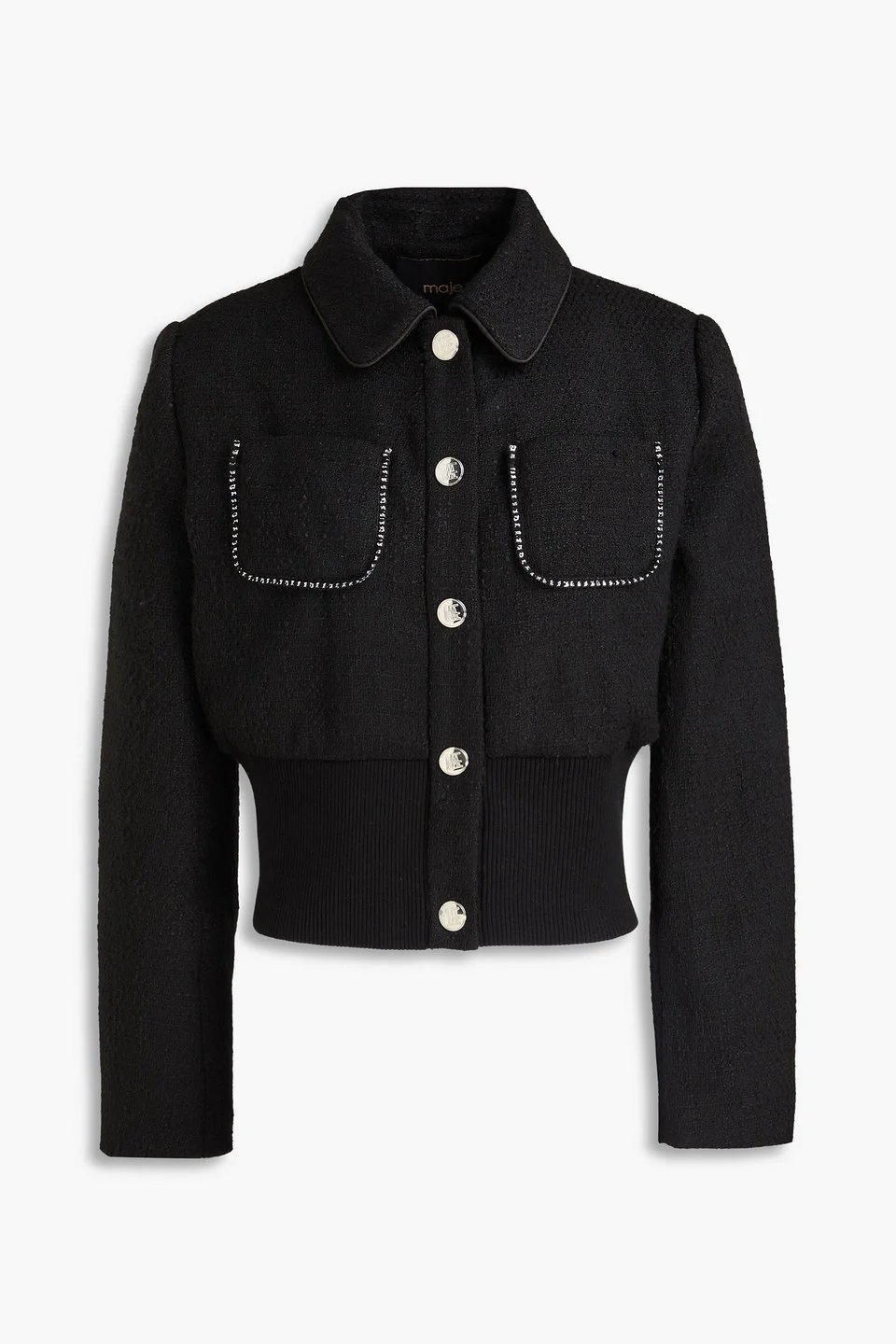Jacket tweed chain-embellished knitted trims breast pockets snap fastenings through front fully lined mid-weight, non-stretchy fabric dry clean imported 100% Polyester Product Code 46376663162836902