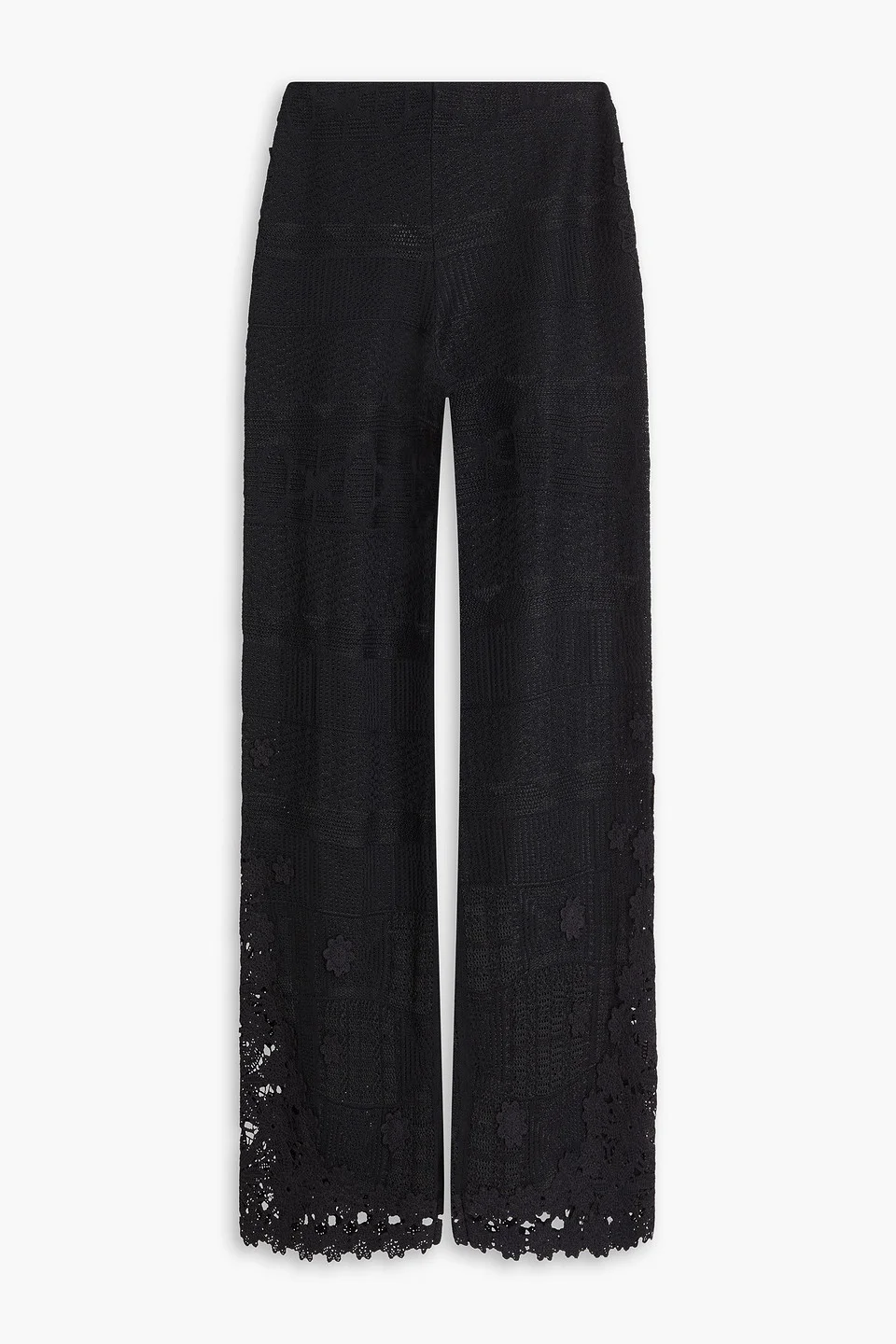 Crocheted lace-paneled jacquard-knit wide-leg pants