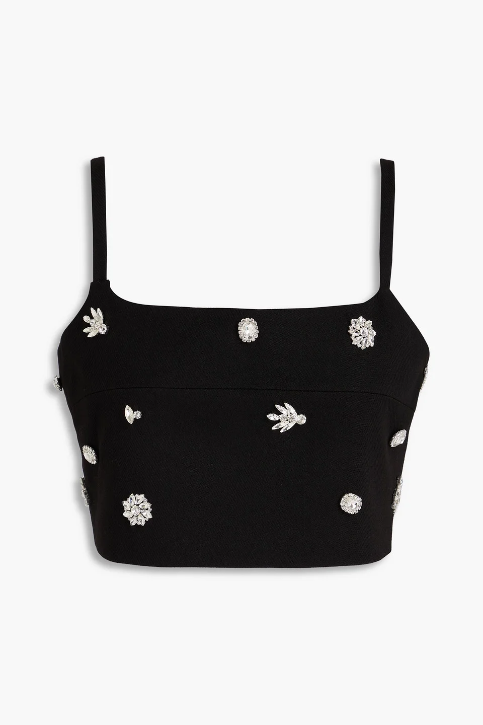 Top twill crystals cropped concealed zip fastening through side fully lined mid-weight, non-stretchy fabric hand wash or dry clean imported 85% Polyester 12% Viscose 3% Elastane Product Code 46376663162951351