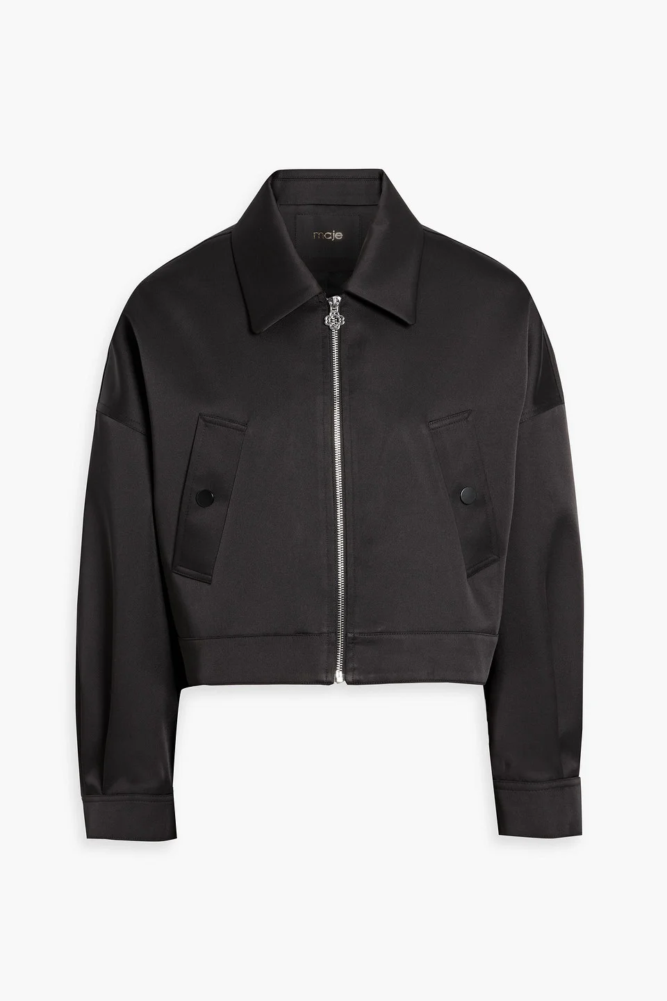 Jacket satin-twill cropped snap-fastening cuffs front welt pockets zip fastening through front fully lined mid-weight, non-stretchy fabric dry clean imported 98% Polyester 2% Elastane Product Code 46376663163104676