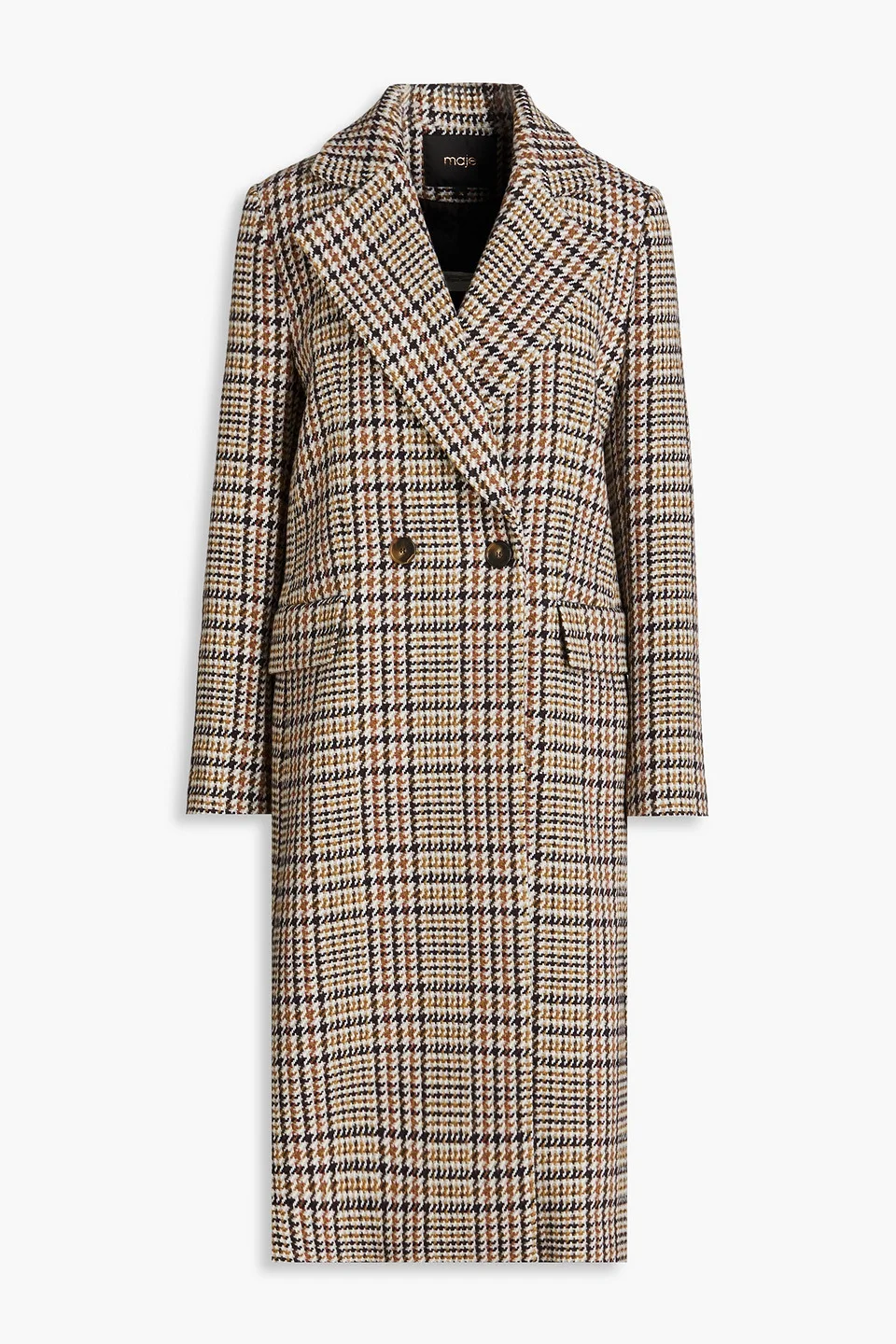 Coat houndstooth tweed wool-blend two front flap pockets fully lined button fastenings through double-breasted front mid-weight, non-stretchy fabric dry clean imported 76% Wool 19% Polyamide 4% Acrylic 1% Polyester Product Code 1647597349769370