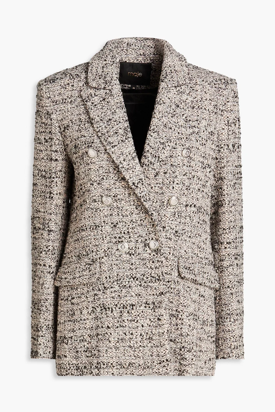 Blazer metallic boucle-tweed button-embellished shoulder pads buttoned cuffs two front flap pockets button fastening at double-breasted front fully lined back vent mid-weight, non-stretchy fabric dry clean imported 58% Synthetic fibers 28% Cotton 9% Wool 3% Polyamide 2% Metallic fiber Product Code 1647597349765453