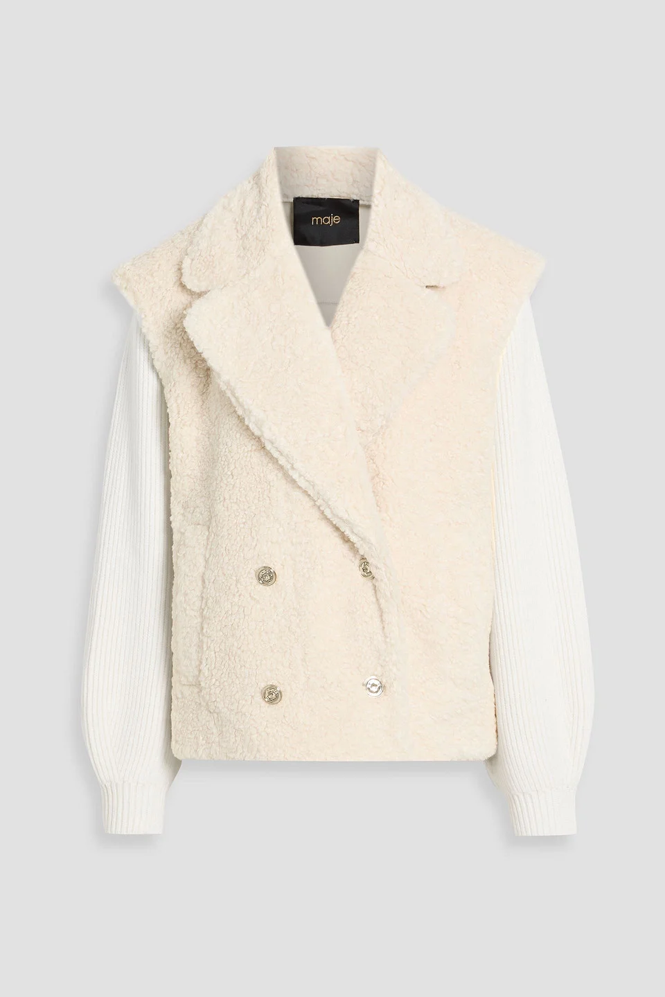 Double-breasted teddy fleece and ribbed-knit jacket
