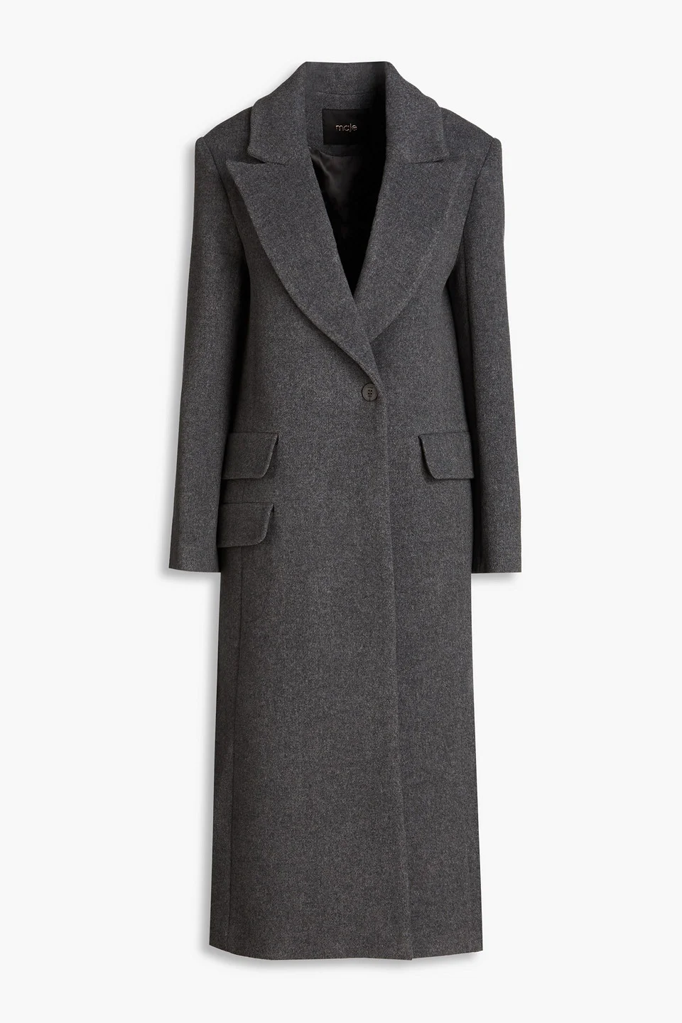 Coat melange felt wool-blend shoulder pads three front flap pockets back vent fully lined button fastening at double-breasted front weighted, non-stretchy fabric dry clean imported 65% Wool 30% Polyamide 3% Acrylic 2% Other Fibres Product Code 1647597349618921