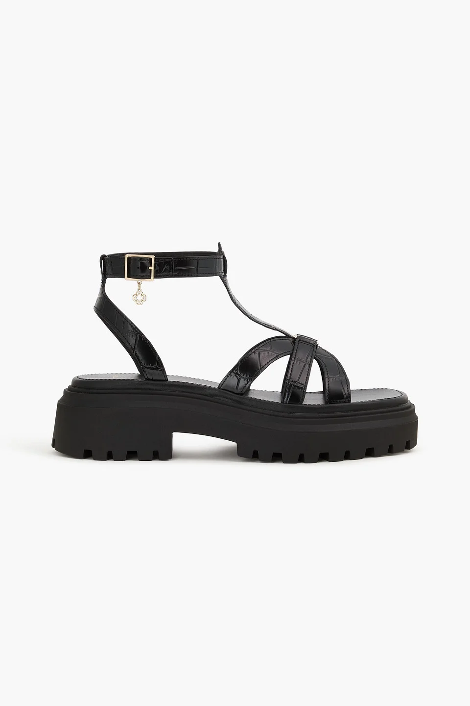 Sandals croc-effect leather logo-embellished cutout open square toe buckle-fastening ankle strap rubber lug sole imported 100% Bovine leather Product Code 46376663162961267