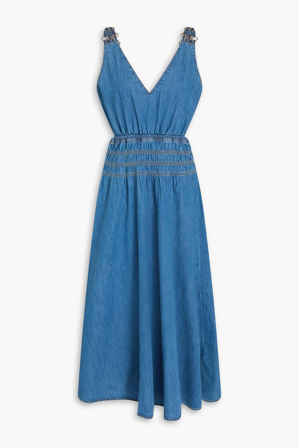 Dress denim embellished shirred cutout slips on mid-weight, non-stretchy fabric machine wash imported 100% Cotton Product Code 46376663162961037