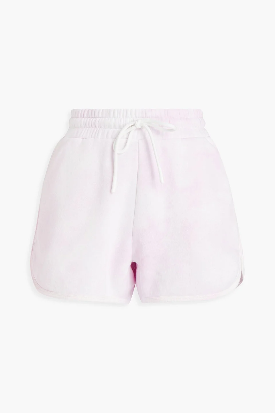 Shorts tie-dyed fleece cotton-blend elasticated drawstring waist high-rise cut two front slant pockets back patch pocket pull on non-stretchy fabric mid-weight fabric machine wash imported 60% Cotton 40% Polyester Product Code 36856120585540865