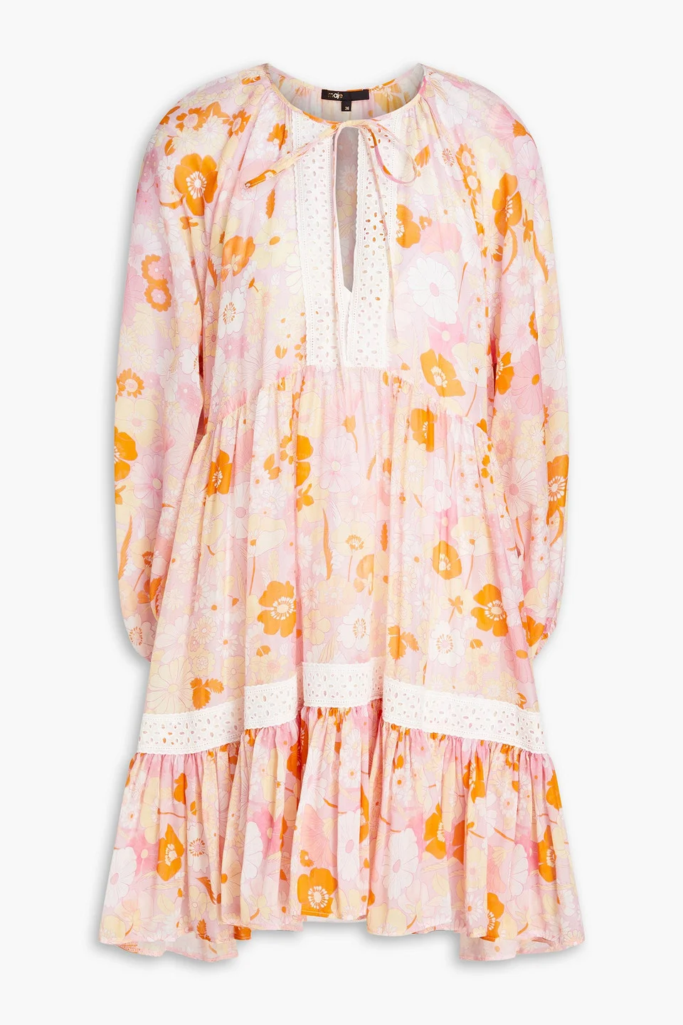 Dress floral-print mousseline cotton and silk-blend broderie anglaise trims gathered elasticated cuffs tie-fastening keyhole at front detachable slip to line lightweight, non-stretchy fabric dry clean imported 73% Cotton 27% Silk Product Code 1647597306776444