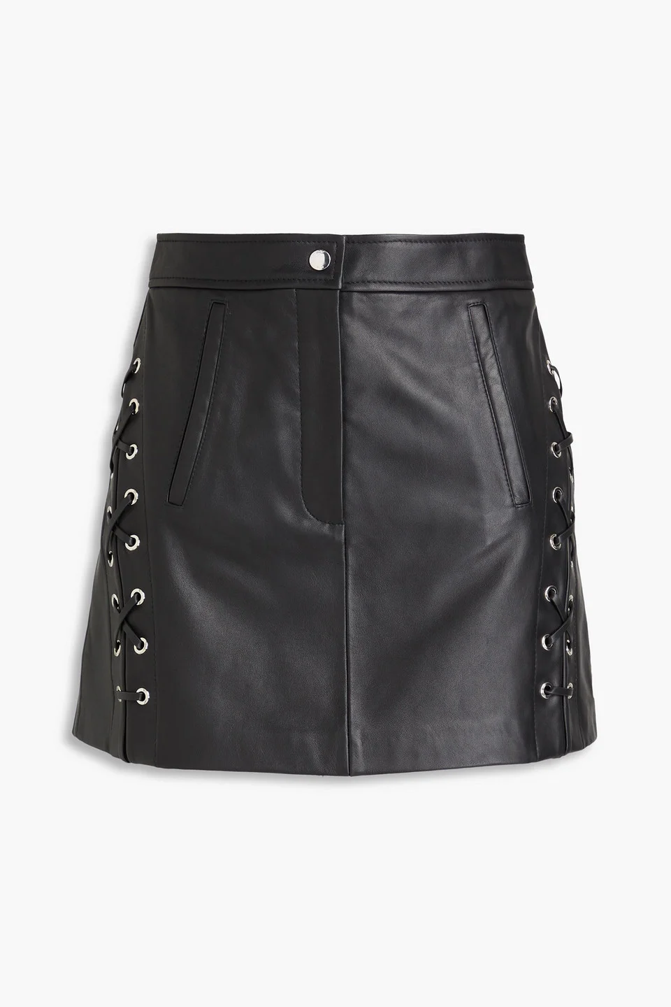 Skirt leather lace-up sides front welt pockets fully lined snap and concealed zip fastening at front supple, non-stretchy leather specialist clean imported 100% Lambskin Product Code 46376663162835938