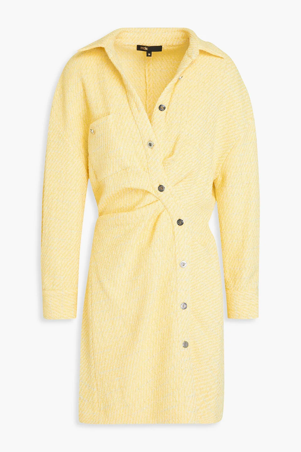 Metallic cotton-blend bouclé-tweed mini shirt dress