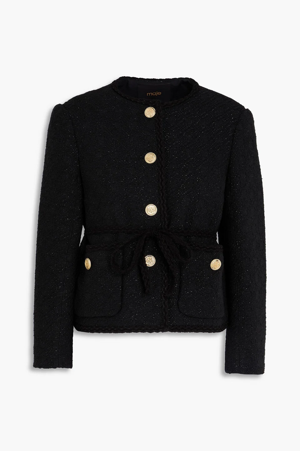 Jacket metallic tweed detachable waist tie front patch pockets button fastenings through front fully lined mid-weight, non-stretchy fabric dry clean imported 35% Cotton 19% Other Fibres 17% Polyester 15% Acrylic 14% Viscose Product Code 46376663162951218