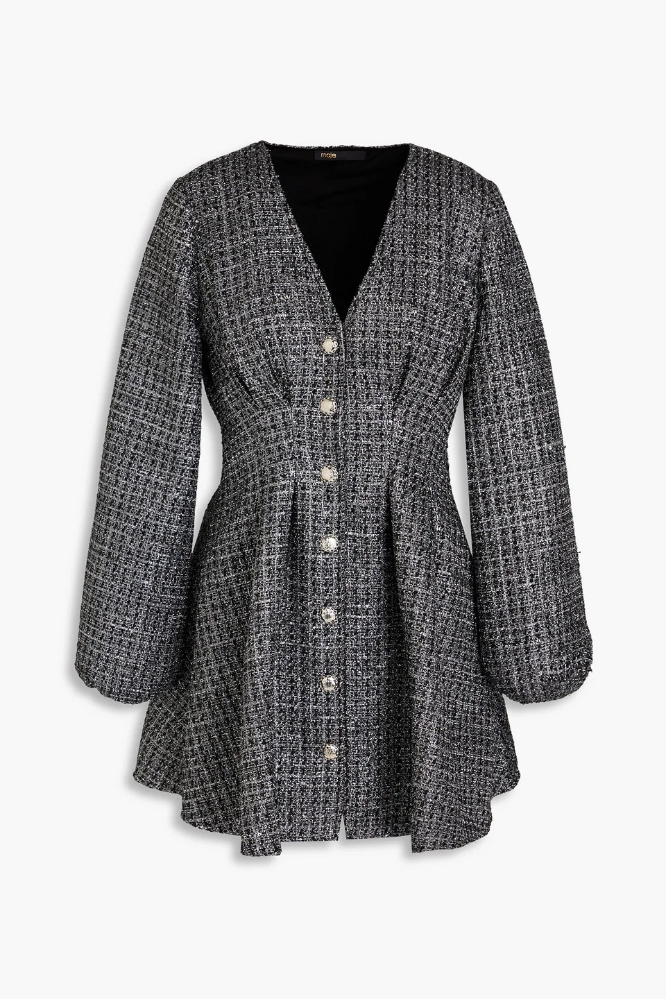 Dress metallic tweed pleated elasticated cuffs snap fastenings through front fully lined mid-weight, non-stretchy fabric dry clean imported 81% Polyester 19% Metallic fiber Product Code 1647597349607548