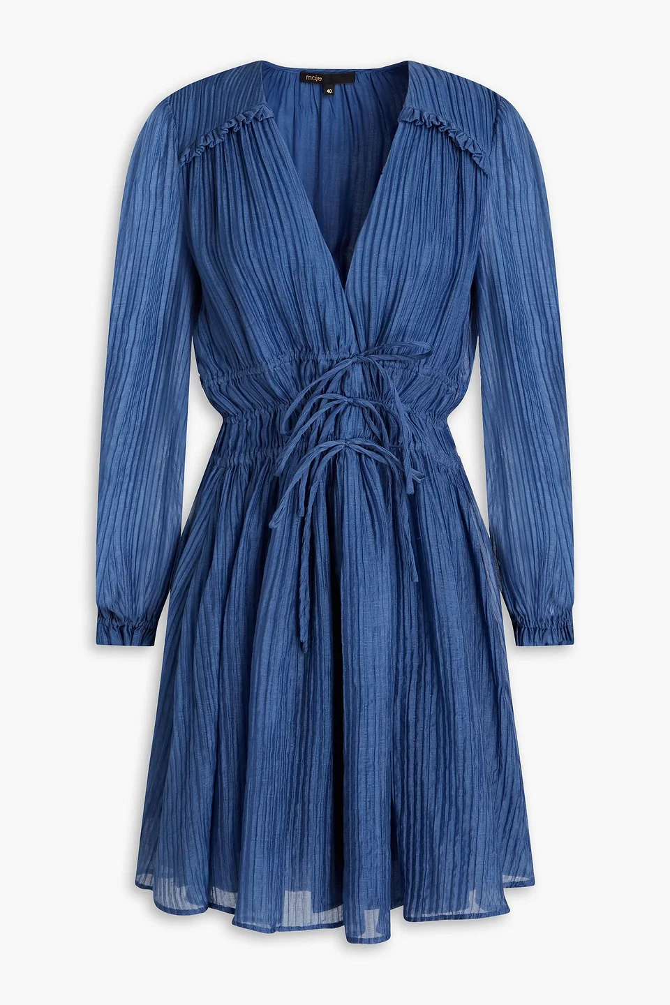 Dress lyocell-blend plisse ruffled trims bow-detailed drawstring waist elasticated cuffs slips on fully lined lightweight, non-stretchy sheer fabric hand wash or dry clean imported 64% Lyocell 36% Polyamide Product Code 1647597306916866