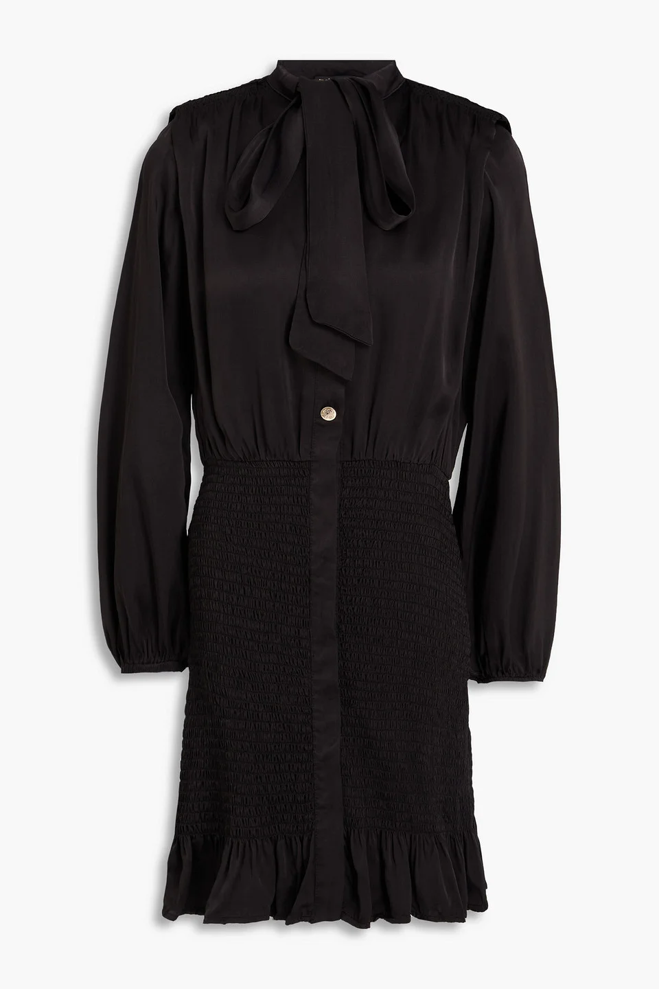 Dress satin-twill shoulder pads shirred pussy-bow elasticated cuffs ruffled hem button fastenings along front mid-weight, non-stretchy fabric machine wash or dry clean imported 100% Viscose Product Code 46376663162951349