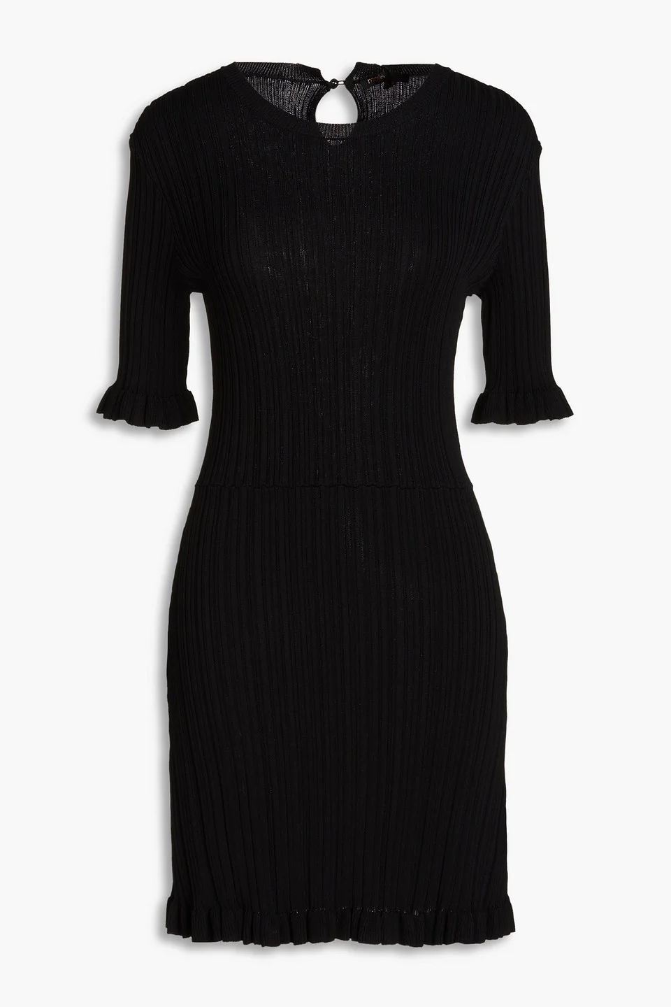 Dress ribbed-knit ruffled trims button-fastening keyhole at back mid-weight knit hand wash imported 74% Viscose 26% Polyamide Product Code 1647597322848149