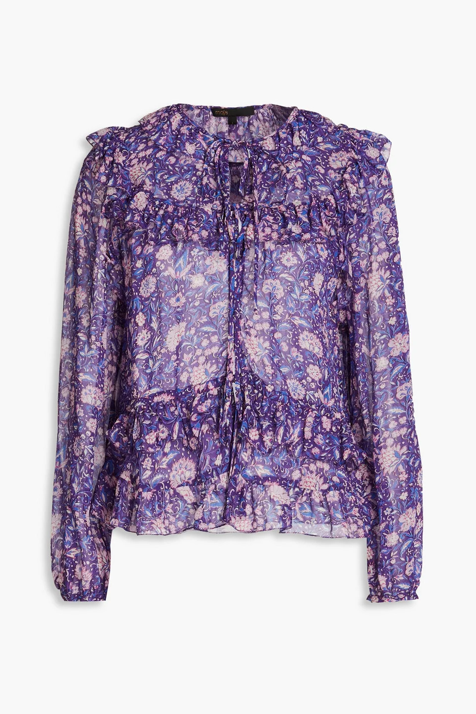 Blouse floral-print crepe de chine ruffled buttoned cuffs tie-fastening keyhole at front mid-weight, non-stretchy fabric dry clean imported 100% Viscose Product Code 1647597323359118